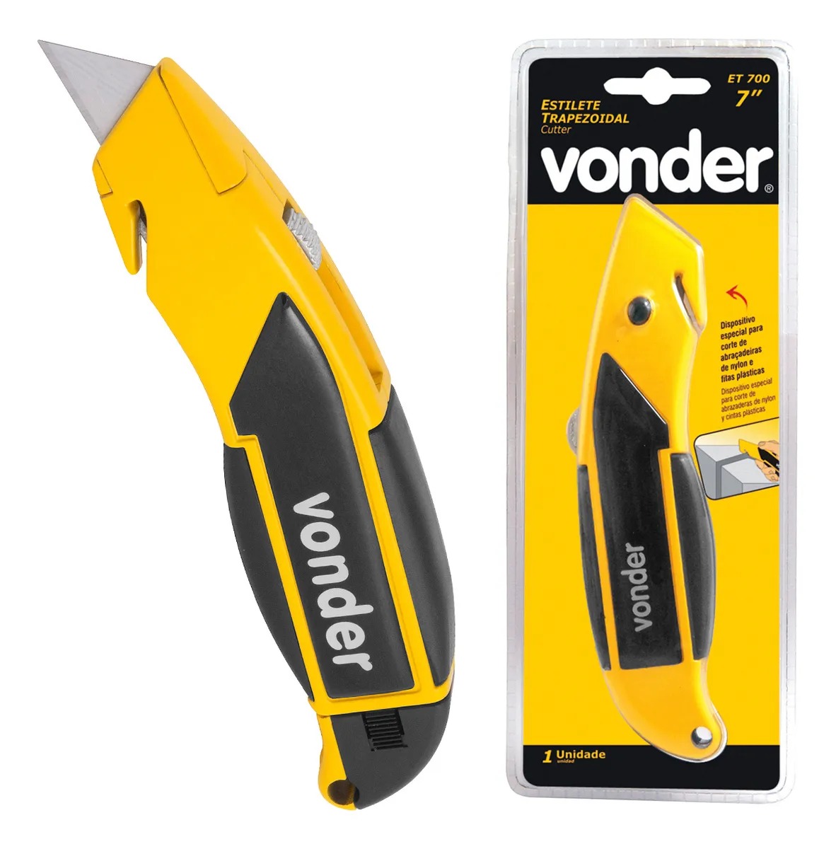 Possui corpo em alumínio reforçado e botão de trava da lâmina. Uso profissional.